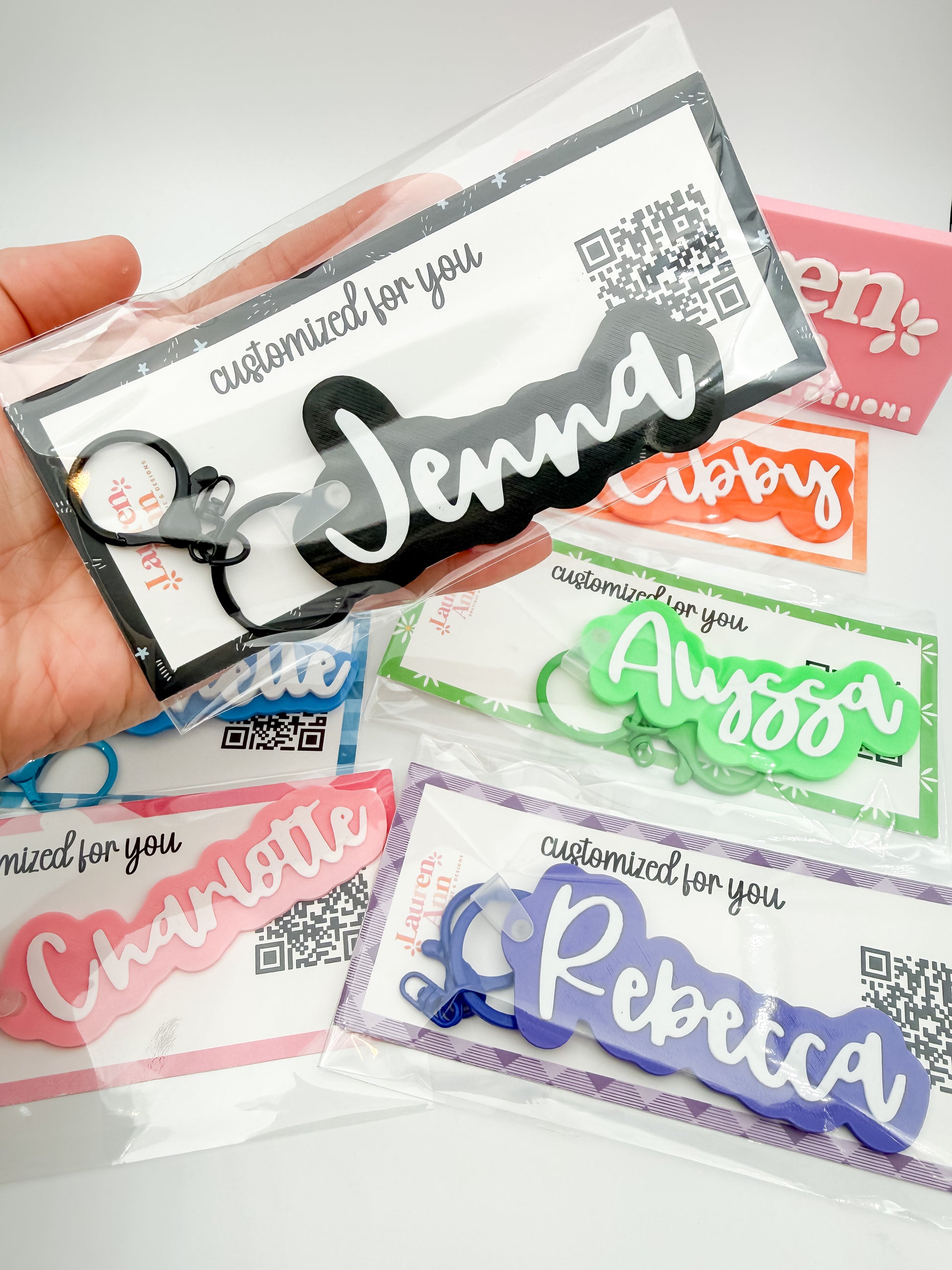 - 1x Custom script name keychain (personalized with your chosen name or word)