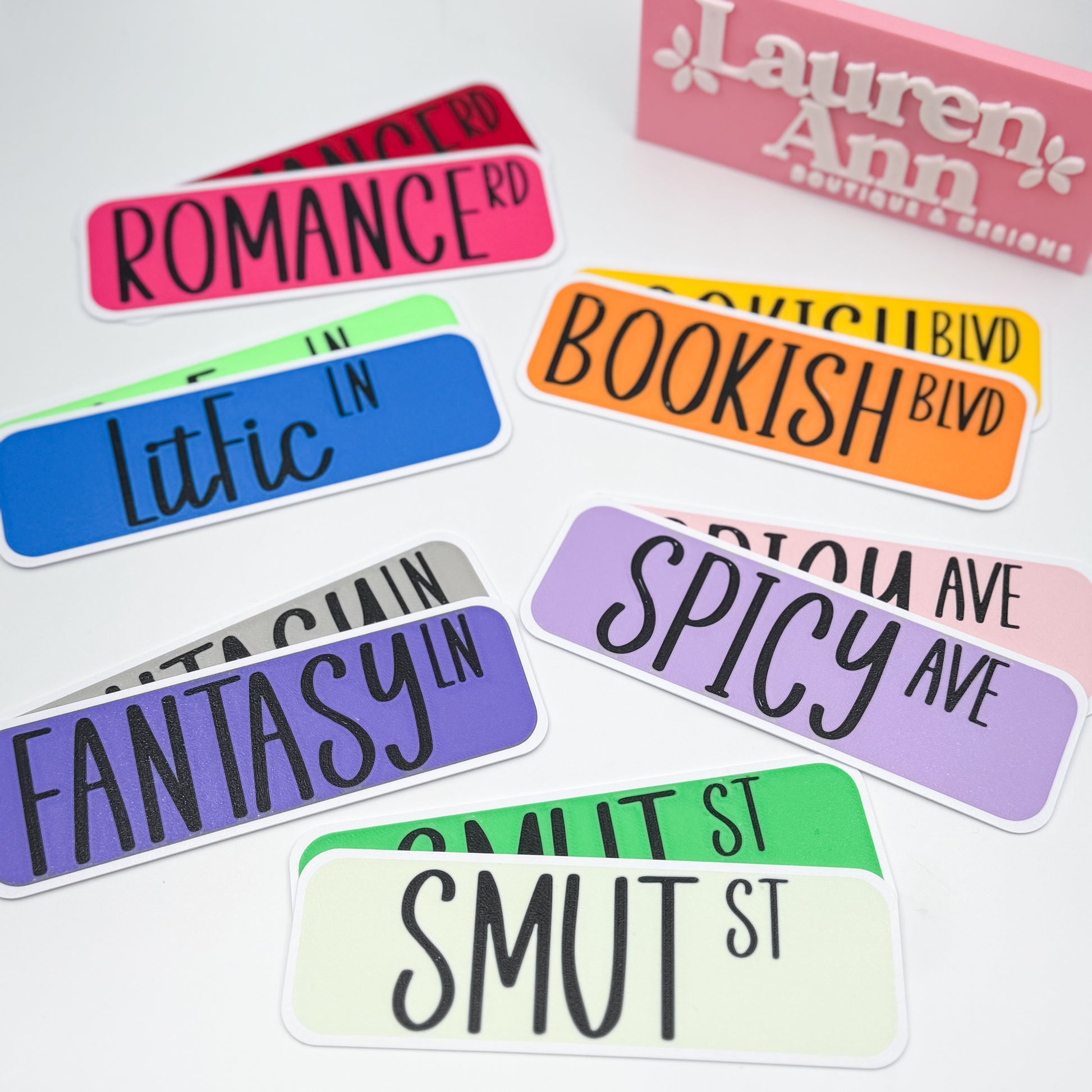 Mark your place in style with these adorable Street Sign Bookmarks! Inspired by classic street signs and bursting with color, these bookmarks add a personal, playful touch to every book you read. Choose your favorite word and color to match your reading mood—whether you’re wandering down Romance Rd, chilling on Fantasy Ln, or cruising Bookish Blvd!